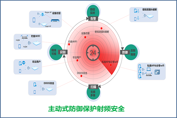 尊龙时凯坚持场景创新的理念,通过最新的第六代Wi-Fi技术802.11ax,保证技术先进性;并针对高密度、室外等的办公环境,针对性地设计场景化无线覆盖方案,提升无线体验。从被动式防御变成主动式防御,采用多样入多种身份认证,并通过无线的安全雷达对无线信号实现扫描,对非法射频进行反制,保障无线安全。