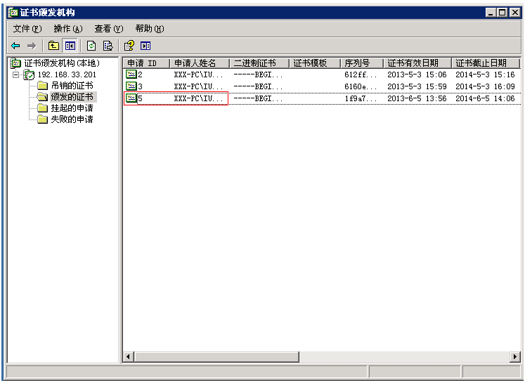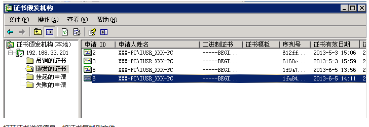 3) 证书颁发成功后,可以在“颁发的证书”选项中,查看已颁发成功的证书申请信息。