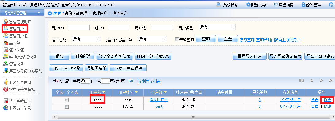 2. 当怀疑用户被加入黑名单导致认证失败时,按如下步骤处理: