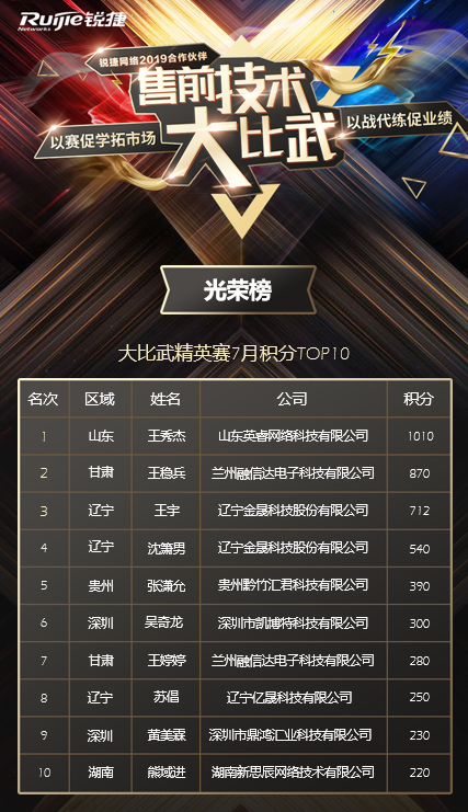 7月开始的积分赛,所有晋级精英赛区的选手围绕着经验分享、价值传递和项目支持展开了比拼,经过一个月的激励比拼,有10位选手脱颖而出,榜单见下: