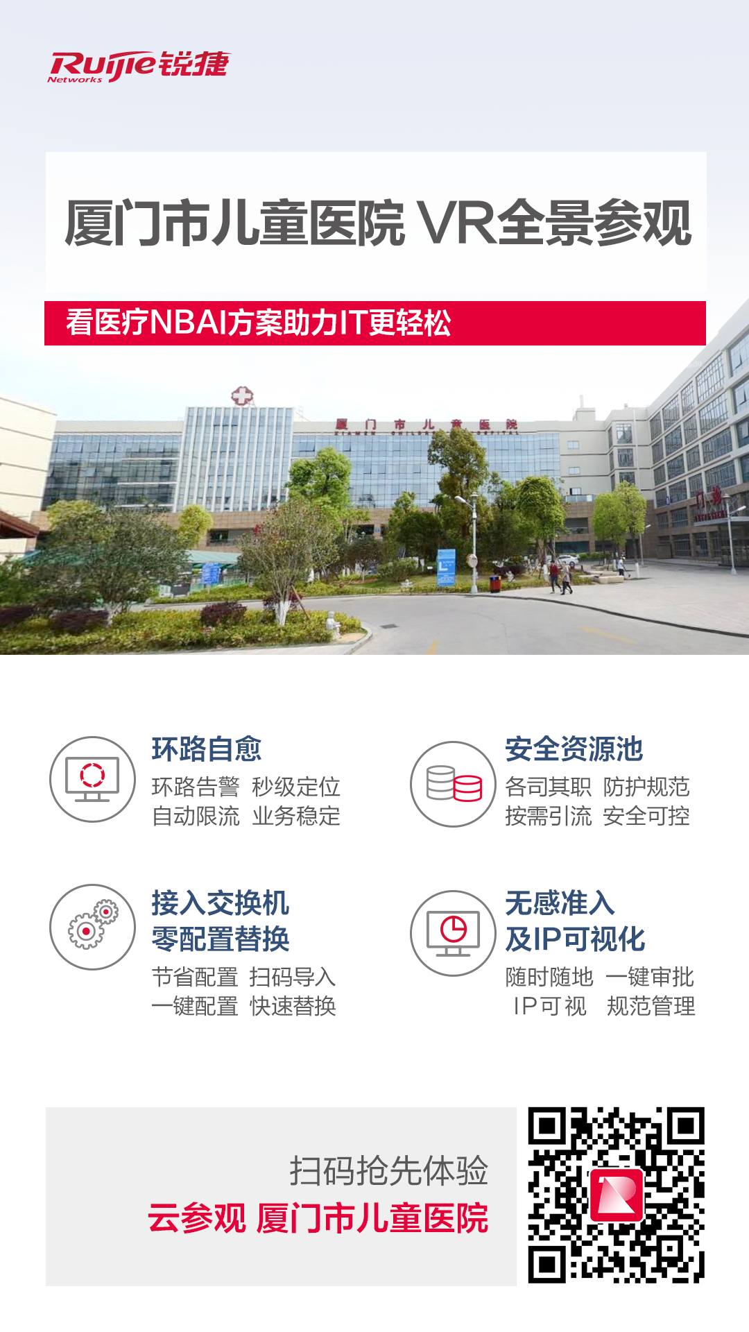 正是厦门市儿童医院在信息化建设上的不断创新与实践,也让NBAI方案展现出独特的功能与价值,帮助医院实现了网络与安全的统一管控,让日常运维变得简单、高效。稳定、安全的网络,也顺畅保障着各项业务的高速运行。